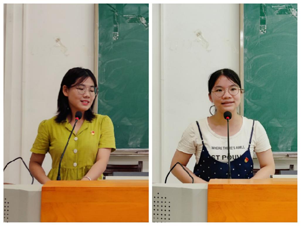 陈海燕同志(左)、梁玲玲同志(右)进行考研经验分享