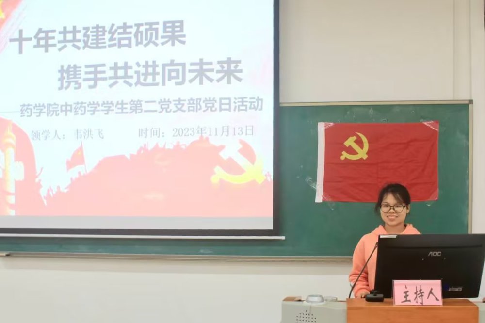 近日,药学院中药学学生第二党支部在仙葫校区教学楼2-210教室开展“十年共建结硕果,携手共进向未来”主题党日活动。支部书记凌勇威在活动中提出:作为一名桂中医青年学子,要不断提升自身的中医药专业能力,讲好中国故事,传播好中国声音。