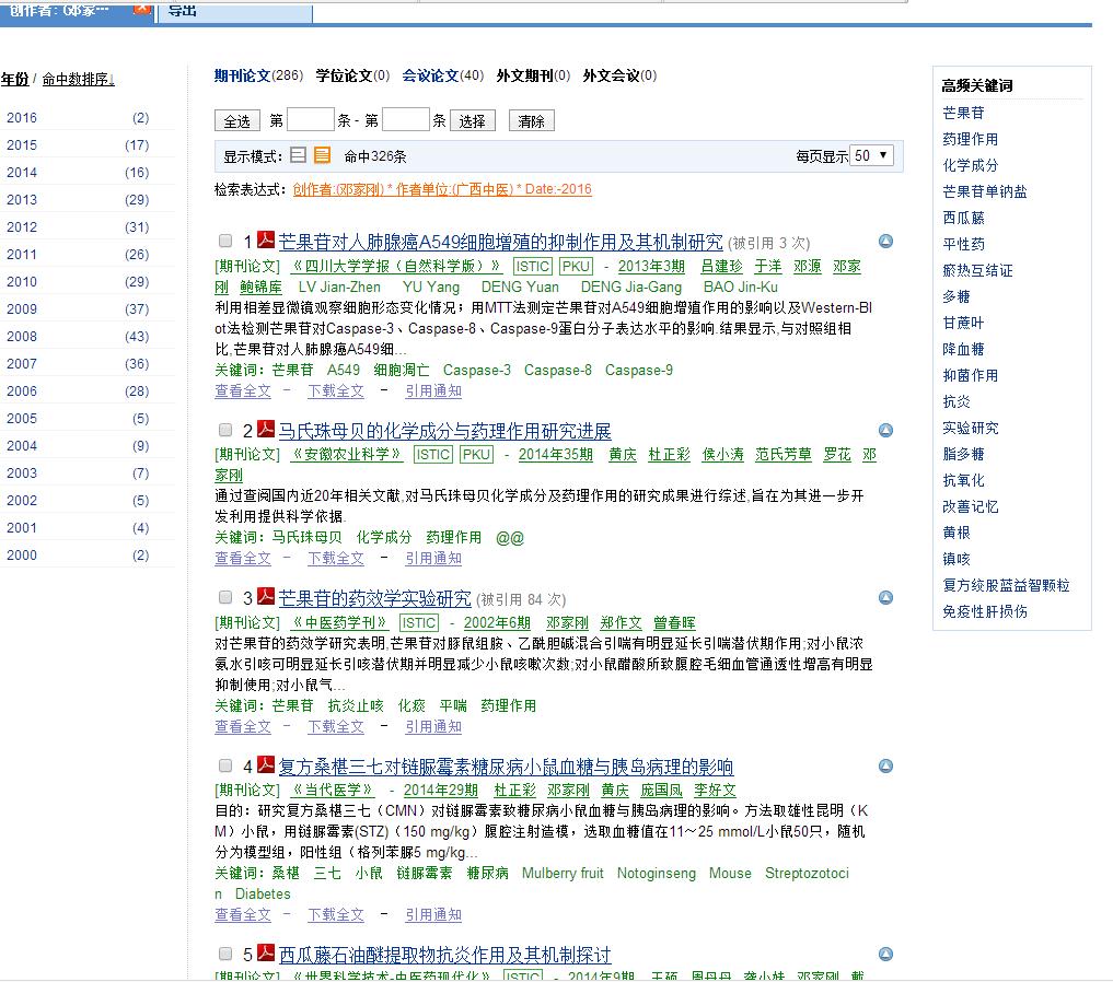 (2)进入检索结果界面:搜索到有关beat365官网邓家刚教授所发表的文献326条.