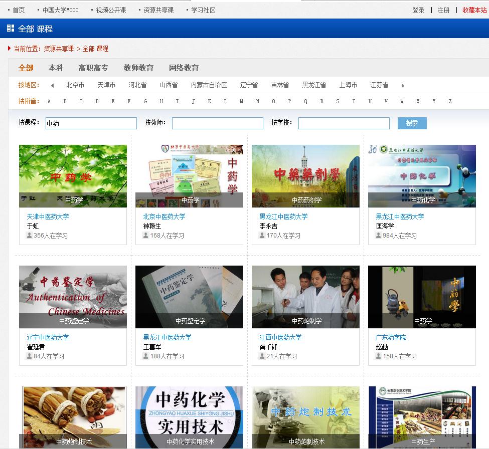 (3)在课程检索框输入检索词进行检索:在课程检索框输入检索词中药进行检索