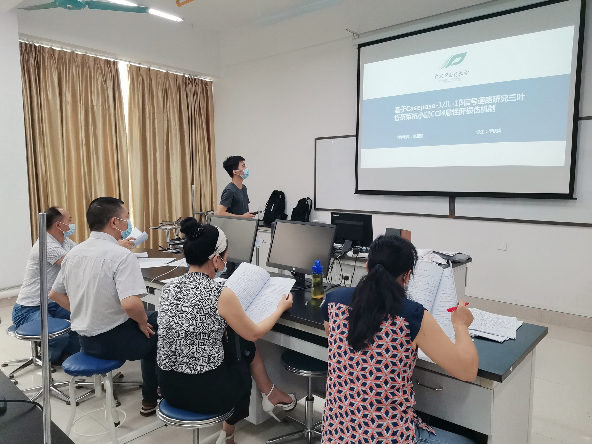 6月9日下午,beat365正版唯一入口必一药学院药理学教研室在仙葫校区中医药壮瑶医药教学实验中心二楼药理学实验室举行了2020届本科毕业生第一批毕业论文答辩会。药学院2020届中药学、药学、食品科学与工程专业近30名本科学生参加了答辩会。为保证了答辩的公正性,答辩会采取学生与带教导师相回避的分组方式,分为三组同时进行。杨秀芬教授、夏星教授、杨柯教授分别担任答辩组组长。答辩过程中,答辩学生准备5-10分钟的PPT,对自己论文的选题目的、理论框架、研究问题的方法、研究结果及其实际意义作了全面而精炼的阐述。各组答辩老师以认真、严谨的态度,考察了毕业生掌握专业知识的熟练程度,详细指出论文中存在的不足和问题,提出改进意见,保证学位论文质量。