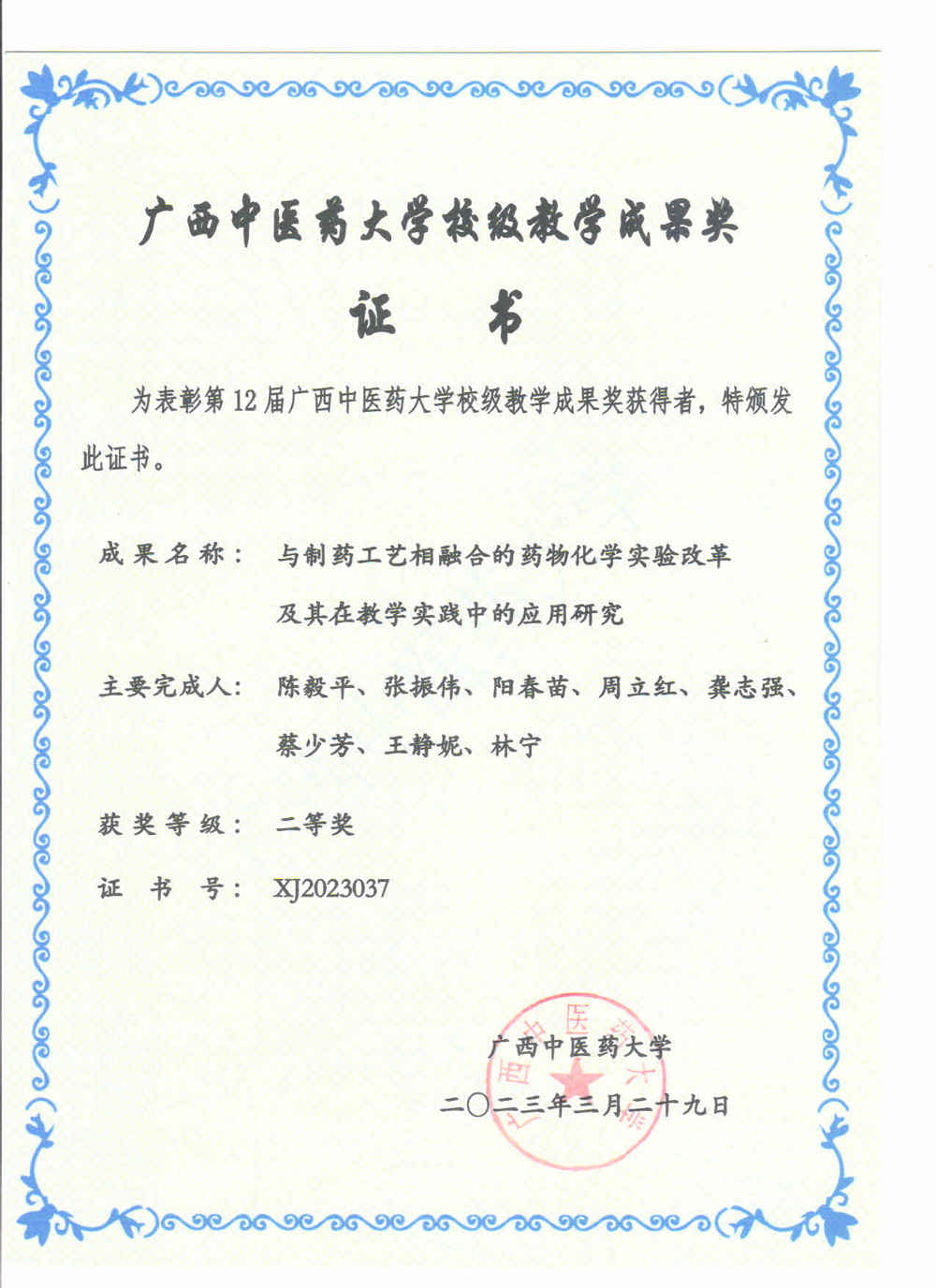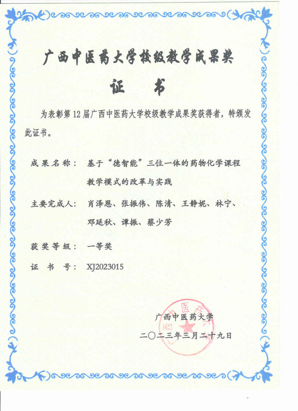 据beat365正版唯一入口必一《beat365正版唯一入口必一关于公布第十二届校级教学成果奖名单的通知》(桂中医大教评[2023]9号)文件精神,药学院药物化学教研室肖泽恩副教授主持的《基于“德智能”三位一体的药物化学课程教学模式的改革与实践》研究成果荣获一等奖,陈毅平教授主持的《与制药工艺相融合的药物化学实验改革及其在教学实践中的应用研究》研究成果荣获二等奖。此次获奖是本教研室近年来不断进行理论与实践探索的结果,将为本教研室不断提高药学应用型人才培养质量提供更加行之有效的教学经验和方法。