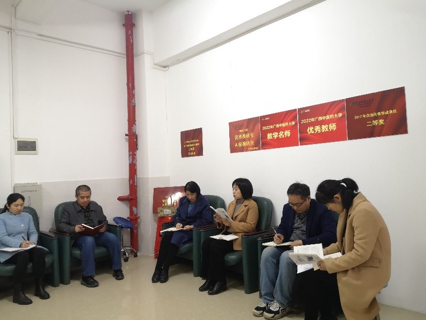 中药鉴定教研室开展本科教育教学审核评估学习 发布时间:2023-04-06 17:01:31 浏览次数: 次 【字体:小 大】 2023年3月28日和4月4日下午,中药鉴定教研室全体老师开展了本科教育教学审核评估学习。教研室田慧主任带领大家一起学习本科教育教学审核评估培训资料,包括上课老师要准备好课堂的资料以及材料检查,尤其是试卷材料和毕业论文材料整理,明确全体老师要根据审核评估各项材料的要求高质量、高标准完成。与会老师热烈讨论,表示会按照学校和学院的具体工作安排完成各项工作。 分享到: 【打印正文】