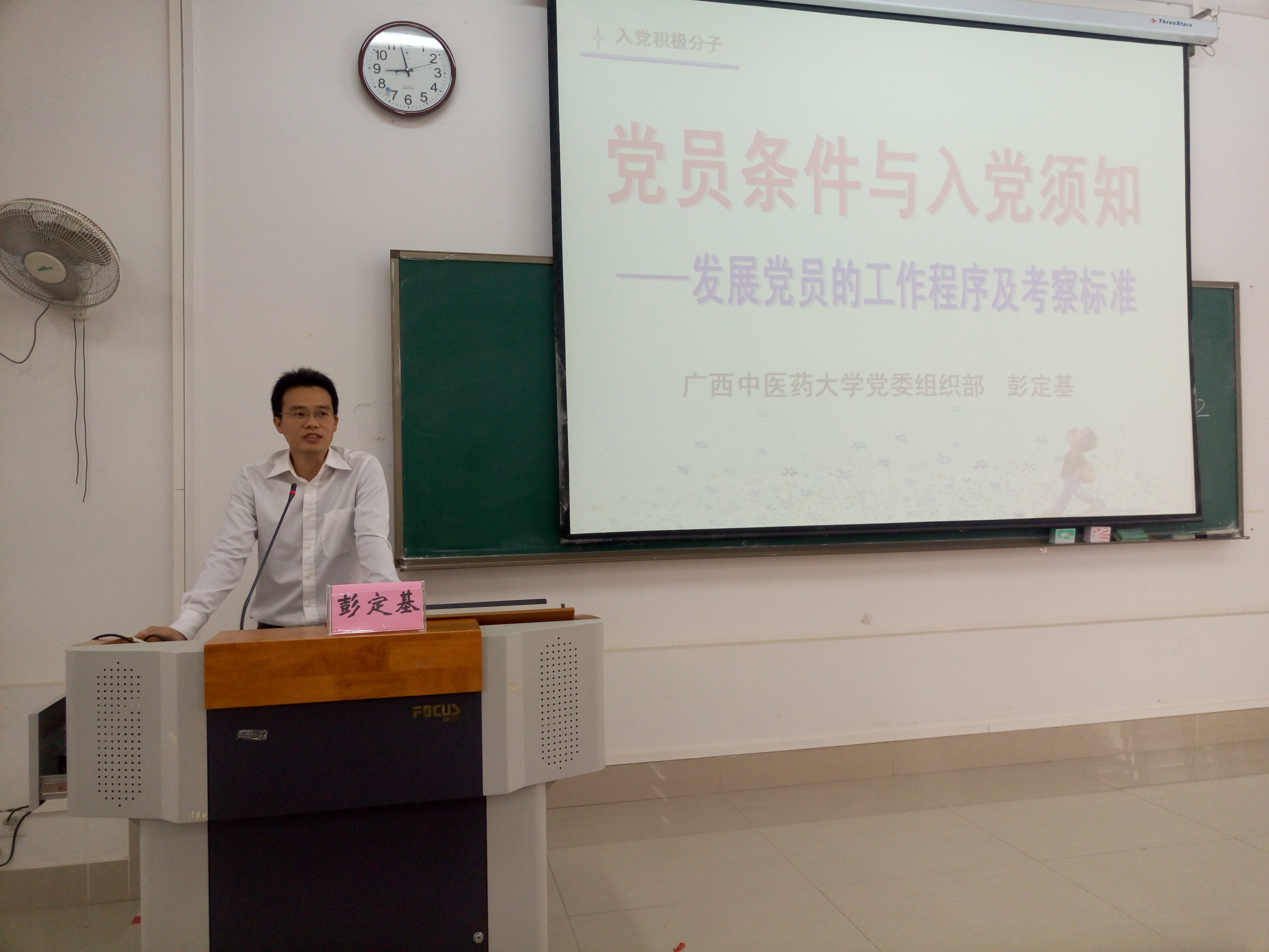 校党委组织部组织科彭定基老师在给同学们讲《党员条件与入党须知》