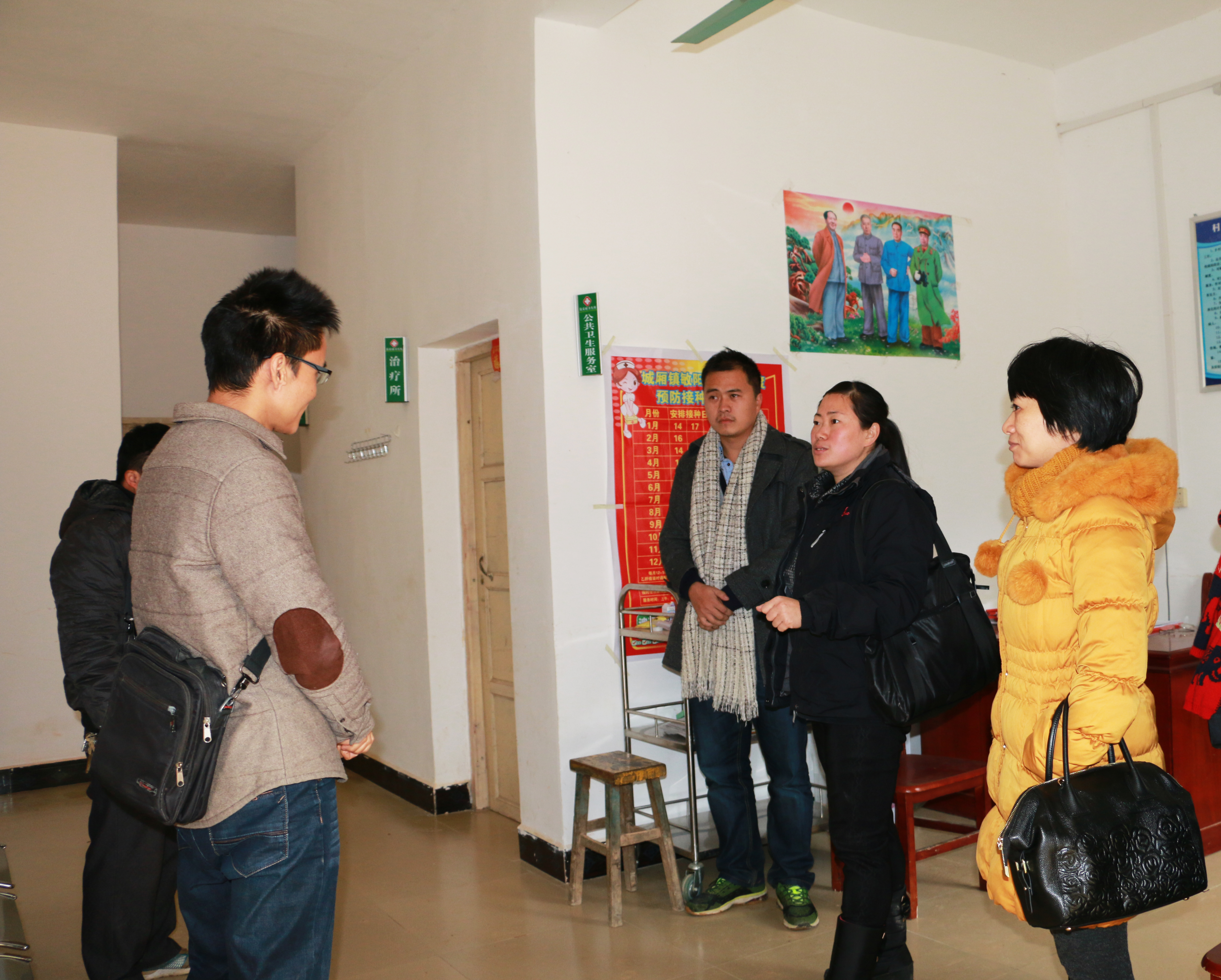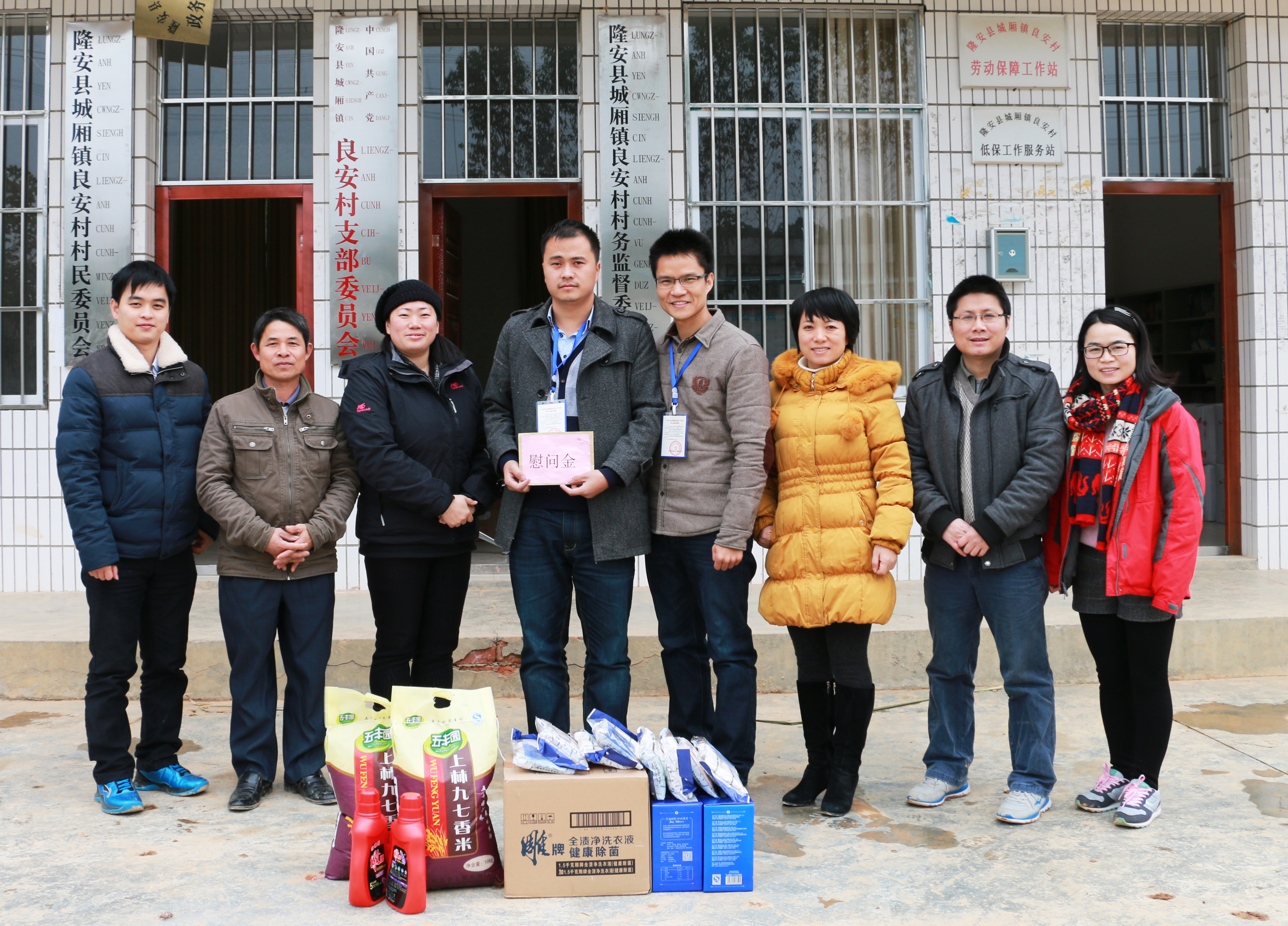 2016年1月24日,药学院党委副书记、分工会主席李豫萍在药学院工会委员李耀华老师、中药鉴定教研室主任田慧老师、药学院分团委书记王金兰老师和药学院学生党支部管海钦老师的陪同下,亲赴南宁市隆安县城厢镇良安村慰问精准扶贫识别工作队员——来自药学院的杜沛霖老师。