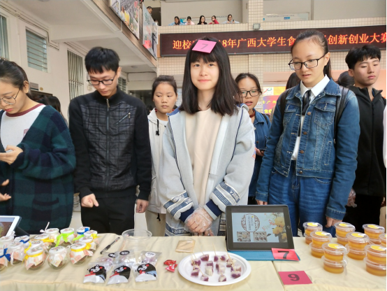 本次大赛由自治区教育厅主办,广西大学承办。有广西大学、beat365正版唯一入口必一等全区6所高校的在校大学生组成的58支队伍参加了本次活动。比赛分为创新工作汇报和实物展示两个环节进行,结合两个环节分数,评选出各奖项。毛彦博士、孙一铭博士带队参加本次比赛。我院食品类专业学子,依托中医药背景,结合自身专业特点,展示了一系列具有色香味以及兼具功能保健的创新食品,得到了评审专家以及大众评委的高度赞誉。经过2天的激烈角逐,《贝肉复方抗疲劳口服液》等7个项目分获二等奖和三等奖。