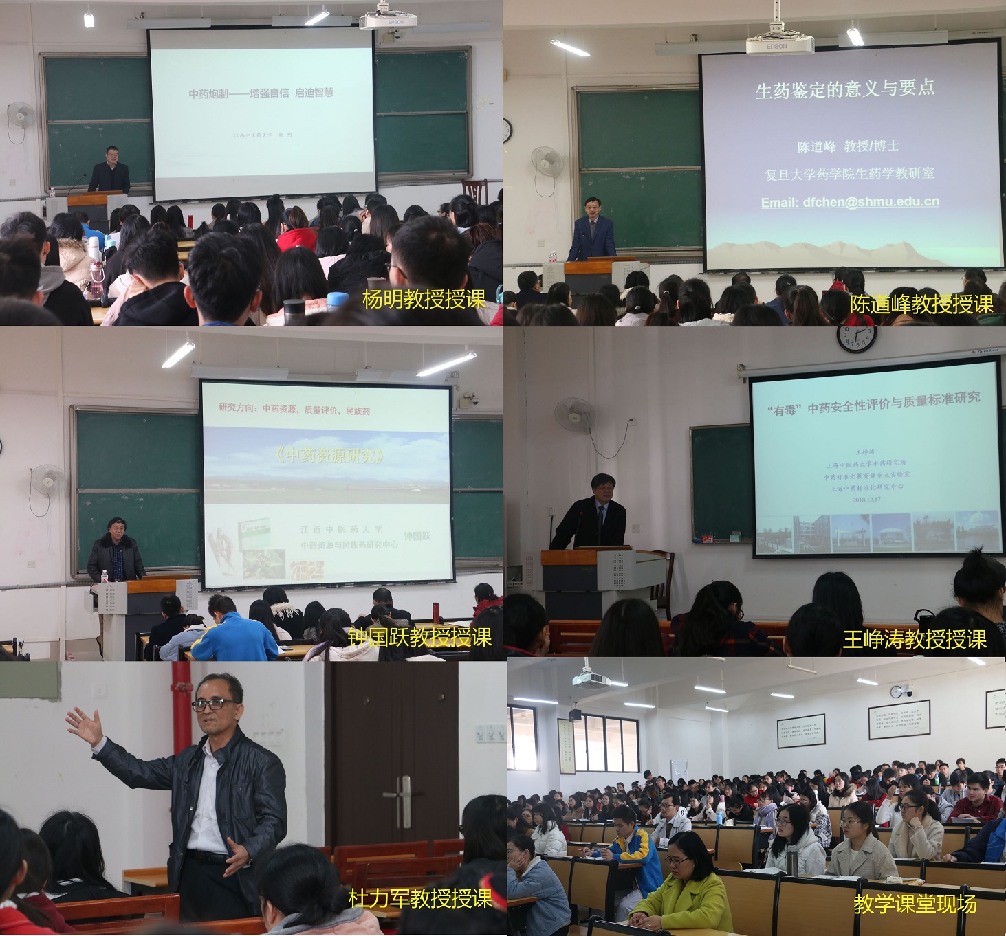 12月17日,杨明教授、钟国跃教授、王峥涛教授、陈道峰教授、杜力军教授围绕中药学科在beat365官网仙葫校区教学楼对中药学专业本科生进行了授课,约220名师生到现场聆听。杨明教授授课内容为中药炮制-增强自信、启迪智慧。中药炮制是我国独有的制药技术,是沟通中医中药的重要桥梁,是提高临床疗效的重要的途径以及满足个体化治疗重要手段。陈道锋教授以生药学基础为题,从中药拉丁名的书写规范,到生药学的资源开发研究进行讲解。钟国跃教授授课内容为中药资源研究,系统讲授了中药资源的定义及特点、历史沿革以及中药资源的研究开发现状及展望。王峥涛教授讲授了药理、中药药理方向最前沿的研究并为即将毕业的本科生如何报考研究生进行了指导。杜力军教授讲授了“有毒”中药安全性评价与质量标准研究。丰富的教学内容以及授课教师扎实的教学功底,为老师学生们带来了精彩的课堂体验。 经过此次讲座,学生充分认识到了我国中医药的博大精深以及发展中医药事业任重道远。
