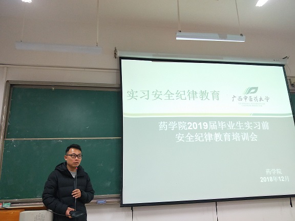 为加强对毕业生的实习安全教育,12月27日上午,药学院2019届毕业生实习前安全纪律教育培训会在教学楼1-205、1-303两个会场同时进行。学工处副处长吴健文、药学院党委副书记李豫萍莅临本次会议,培训会由2015级辅导员凌勇威老师和黄鑫老师主讲,药学院2015级502名学生参与此次安全教育培训会。