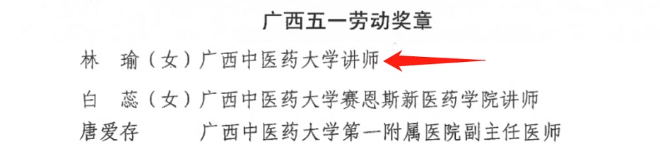 林瑜老师喜获广西五一劳动奖章