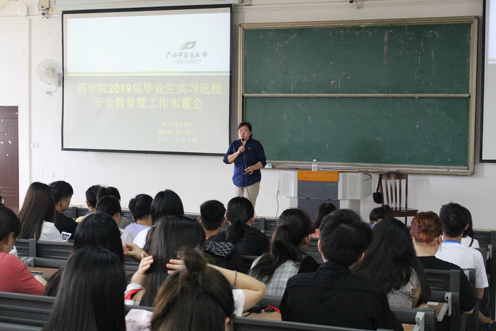 为进一步增强毕业生消防安全意识,提高突发事件自救能力,5月12日,药学院在仙葫校区召开2019届毕业生消防安全专题教育会。药学院党委副书记李豫萍,辅导员凌勇威、黄鑫以及2019届全体毕业生参加会议。