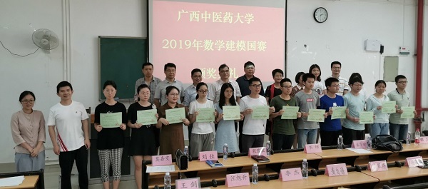 近期,为了表彰全国大学生数学建模竞赛的获奖选手,学校在仙葫校区2-105教室举办了2019年beat365正版唯一入口必一数学建模竞赛颁奖典礼。学校教务处韦维、程若敏。药学院秦华珍、韦相忠及数学物理教学团队全体老师、辅导员等80余名师生参与活动。