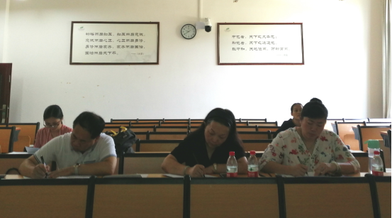 三位评委专家:罗伟生、刘小江、李豫萍在认真记录青年教师授课表现