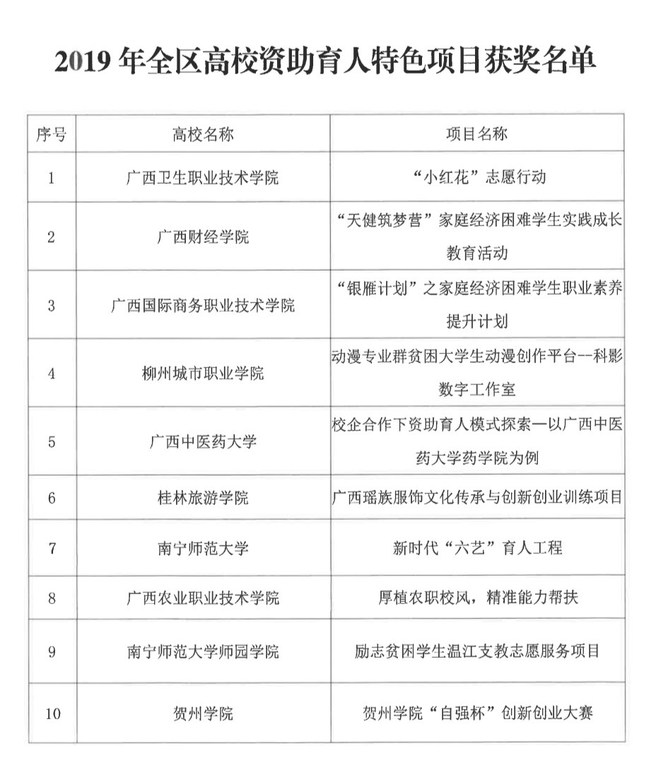 【喜讯】药学院荣获全区高校资助育人特色项目 来源:药学院 作者:王宗耀 发布时间:2019-12-30 17:32:59 浏览次数: 次 【字体:小 大】 近日,2019年全区资助育人项目和工作典型案例评选获奖名单已由广西壮族自治区教育厅公布,我院申报项目“校企合作下资助育人模式探索——以beat365正版唯一入口必一药学院为例”荣获2019年全区高校资助育人特色项目的称号。 谨此祝贺我院今年在资助育人方面取得的成绩,希望全体项目人员认真总结申报经验,推动我院“三全育人”工作再上新台阶。 分享到: 【打印正文】