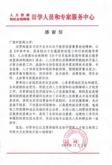 人社部留学人员和专家服务中心致信感谢beat365官网助力脱贫攻坚活动