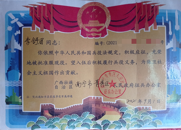 入伍通知书