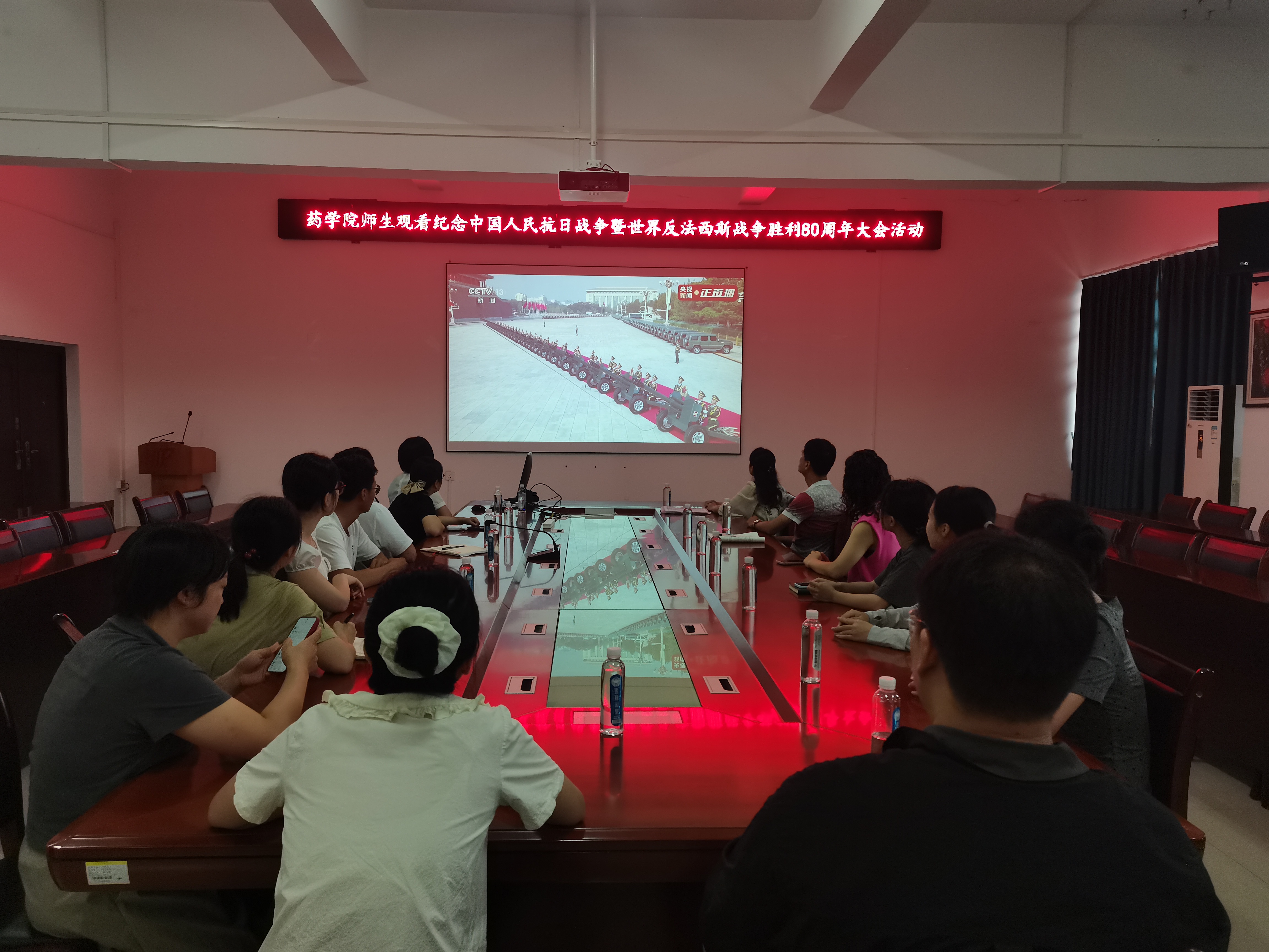 为纪念中国人民抗日战争暨世界反法西斯战争胜利80周年,9月3日上午,药学院在达道楼A405会议室组织师生集体观看大会实况直播,共同回顾峥嵘岁月,缅怀革命先烈,凝聚奋进力量。