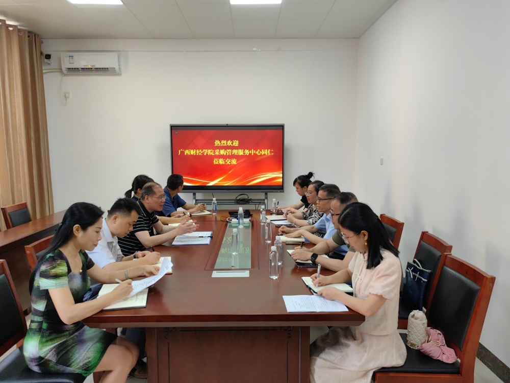 5月17日上午,广西财经学院采购管理服务中心主任黄锡远一行莅临beat365官网,就采购内部控制建设、采购项目高效推进、合同履行管控、项目采购方式相关工作进行深入调研与交流,资产管理处处长钟勇、副处长伍金荣和采购管理科等相关人员参加了座谈。