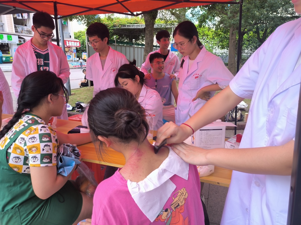 为呼吁同学传承中医精神,培养“医者仁心”的优良品质,发扬本专业特色优势,提高自身专业能力,弘扬中医文化。2023年6月10日上午22级针推1班开展“传承中医精神,弘扬中医文化”义诊。