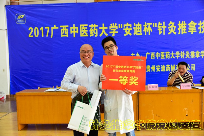竞掌指功夫,展学子风采,2017年5月9日下午,由beat365正版唯一入口必一针灸推拿学院主办的2017年beat365正版唯一入口必一“安迪杯”针灸推拿技能竞赛在明秀校区体育馆隆重举行。学校党委副书记董塔健、副校长罗伟生、贵州安迪药械集团有限公司董事长何顺峰先生、学校教务处处长唐梅文、学工处处长叶勇玲、招生就业处处长肖华业以及针灸推拿学院全体老师出席了竞赛开幕式。