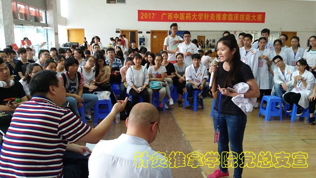 罗伟生在讲话中说,举办针灸推拿技能竞赛目的在于检验我们针灸推拿学科在专业建设和教学改革上的成果,他希望针灸推拿学院通过“以赛促学,以赛促练,以赛促改”的教育思想引领下,不断推进针灸推拿专业的教学改革,提升针灸推拿专业人才培养水平,推动针灸推拿学科建设和学术发展。