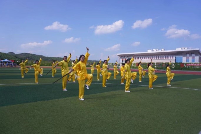 在两校区的太极拳比赛中,我院的学生们精神抖擞,动作协调,刚柔并济、形神俱备,将太极拳的神韵展现得淋漓尽致。而下午的太极剑比赛在操场上如火如荼地进行,而此时骄阳似火,场上热流滚滚,但同学们的激情只增不减,蓄势待发的她们身着明黄的太极服,带着热情与信心,给我们带来了精彩的表演。