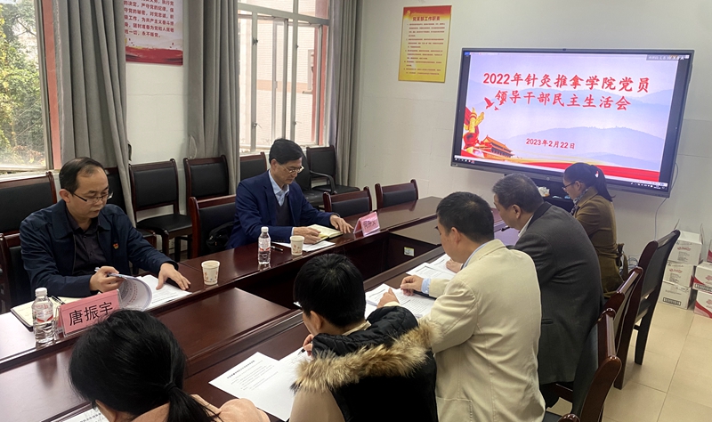 2023年2月22日针灸推拿学院党员领导干部民主生活会在明秀校区针灸推拿学院会议举行。