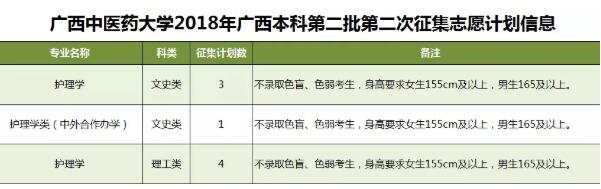 2018年征集志愿-广西本科第二批(第二次征集) 发布时间:2018-07-26 19:47:49 浏览次数: 次 【字体:小 大】 beat365官网此次将征集护理学,护理学类(中外合作办学)等专业计划共8名,详情如下: 请考生填报志愿前务必确认身高条件符合专业要求,避免被退档。 征集志愿填报时间:7月27日18时至7月28日9时,请考生在规定时间内进入广西招生考试院官网(http://www.gxeea.cn)“2018年普通高校招生志愿填报”填报征集志愿,并保证在征集志愿填报、投档及录取期间保持报名时所留联系电话畅通。详情请点击“征集志愿”。 分享到: 【打印正文】