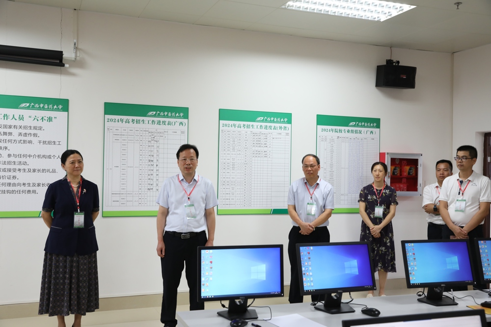 7月22日上午,学校党委书记莫锦荣,党委副书记、校长姚春到beat365官网招生录取现场,检查指导beat365官网2024年普通高考招生录取工作,慰问招生录取工作人员,学校党委副书记邹勇及相关职能部门负责人陪同。