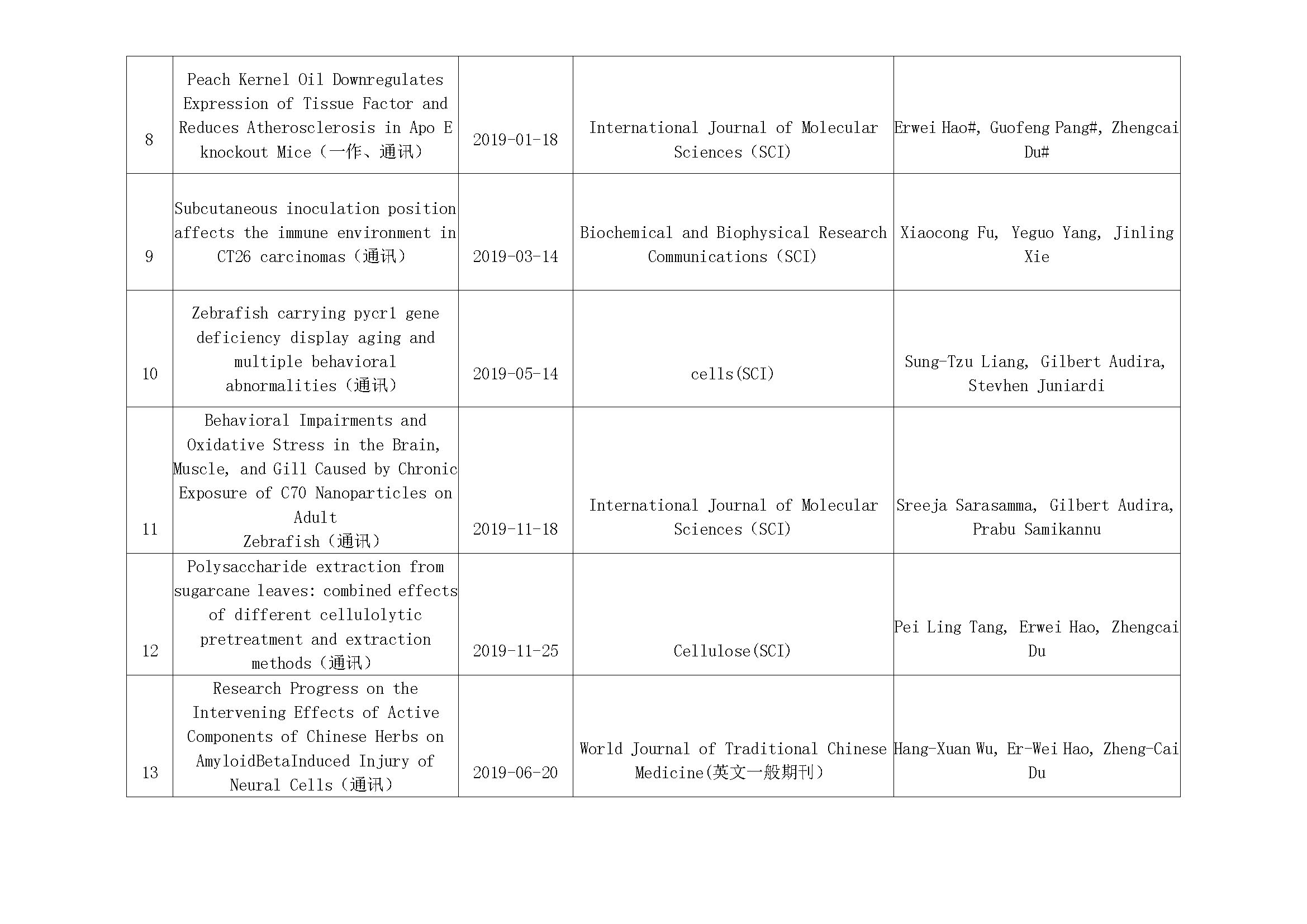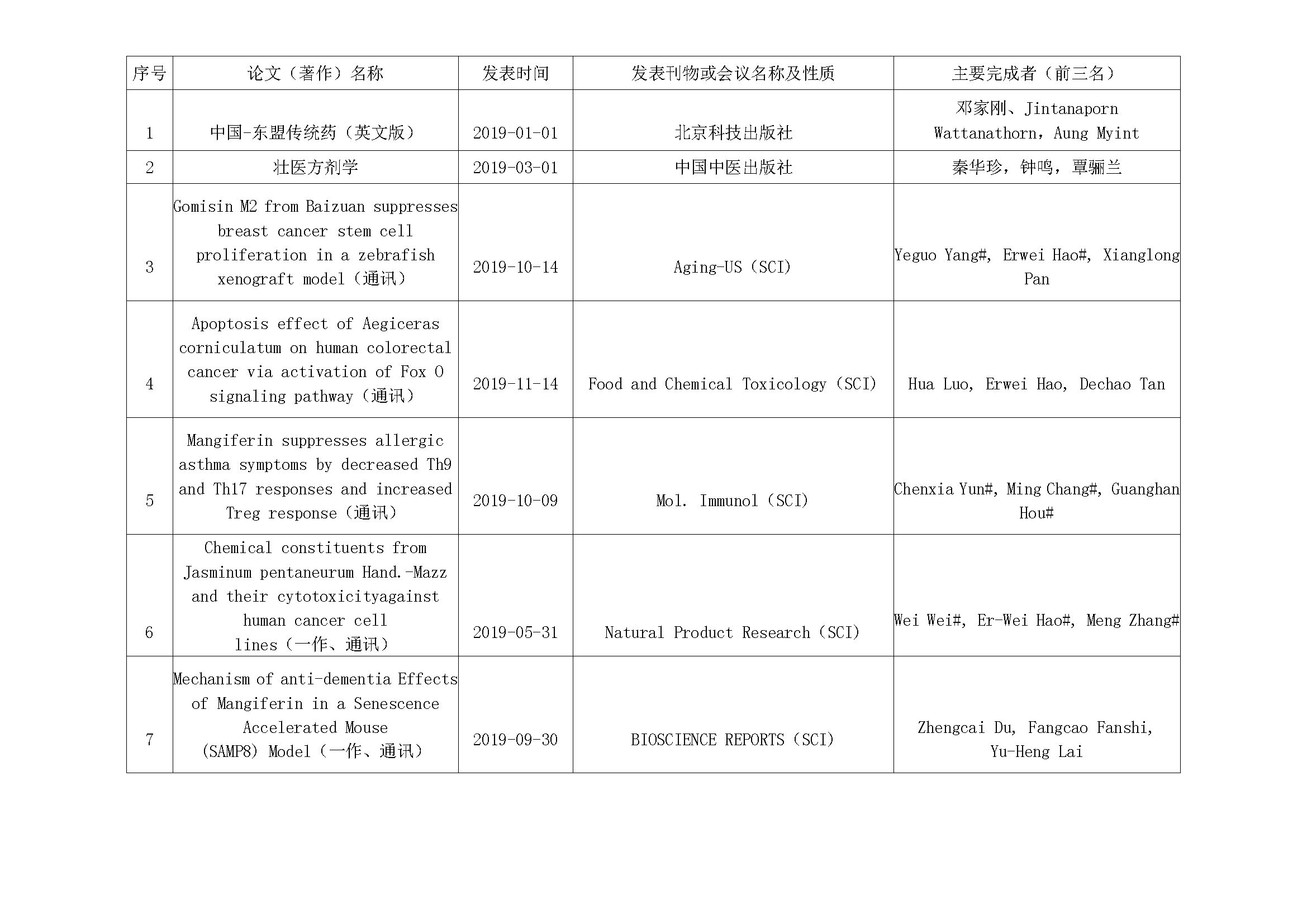 2019年实验室发表论著一览表