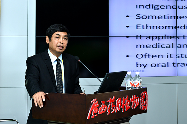 中国医学科学院药用植物研究所广西分所副所长彭勇教授作学术报告
