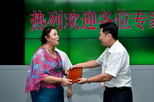 beat365正版唯一入口必一副校长庞宇舟教授向泰国代表赠送beat365官网校徽