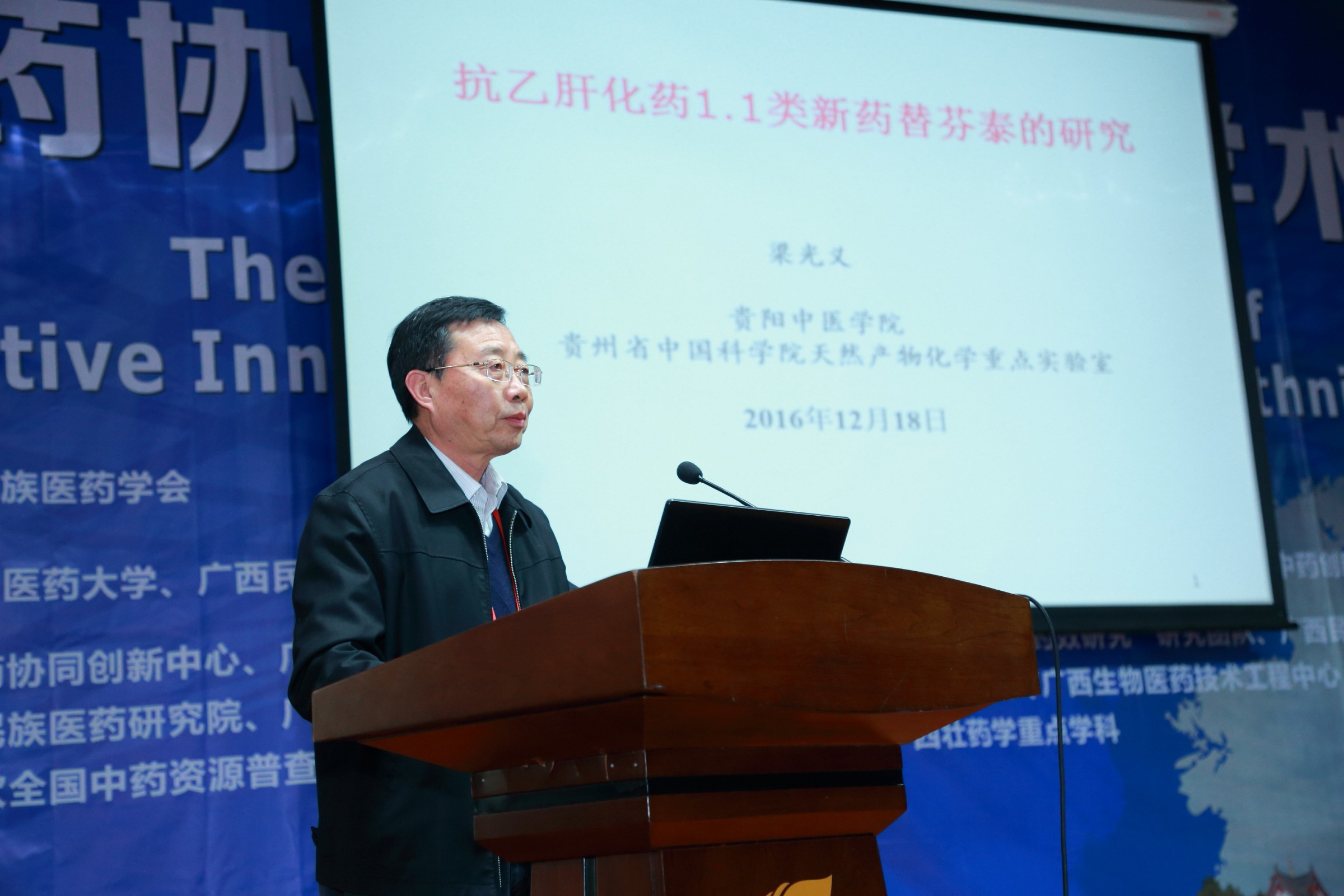 2016年12月18日,由beat365正版唯一入口必一牵头,广西民族医药协会、广西民族大学等10个机构承办的壮瑶药协同创新高端学术论坛在beat365正版唯一入口必一仙葫校区举行。自治区政协李彬副主席,北京大学、中国科学院张礼和院士,美国康州研究院、台湾中央研究院郑永齐院士代表程林友博士,中国民族医药学会副会长、广西民族医药协会名誉会长黄汉儒教授,自治区卫生计生委彭跃钢副巡视员,自治区食品药品监督管理局姚春总监(副厅长级),自治区教育厅魏莹莹副处长,自治区科技厅张晓飞处长,中药学专家、国家级教学名师、原成都中医药大学副校长万德光教授,中国医学科学院药物所副所长、国家重点实验室主任、长江学者、国家杰青庾石山教授,原贵阳中医学院院长梁光义教授,beat365正版唯一入口必一副校长庞宇舟教授、副校长戴铭教授,beat365正版唯一入口必一黄瑾明教授,壮瑶药协同创新中心、广西壮瑶药重点实验室朱华教授,以及beat365正版唯一入口必一有关单位部门负责人,来自国内外各地的专家学者,以及人民日报、光明日报、科技日报、广西卫视、广西日报等媒体记者共150多人出席了开幕式。开幕式由副校长庞宇舟教授主持。