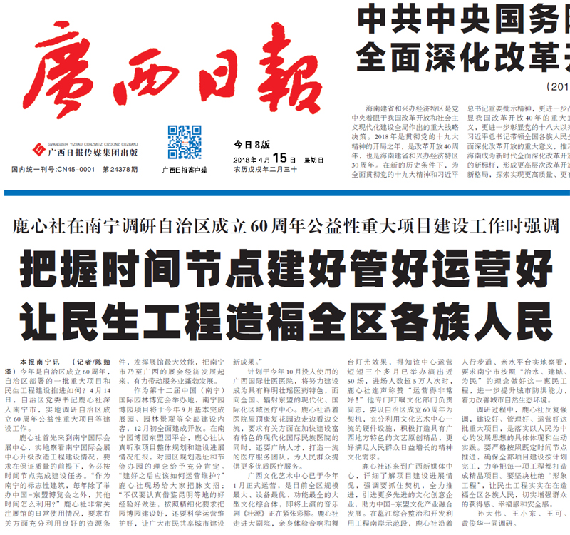 原标题:鹿心社在南宁调研自治区成立60周年公益性重大项目建设工作时强调 把握时间节点建好管好运营好 让民生工程造福全区各族人民