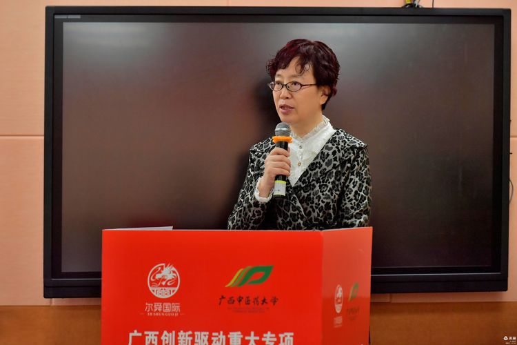 beat365正版唯一入口必一科研成果处唐红珍处长在“交付仪式”上致辞,对广西中药药效研究重点实验室在科研成果转化方面取得的成绩给予了肯定,并希望能再接再厉,在邓家刚教授的带领下再创佳绩