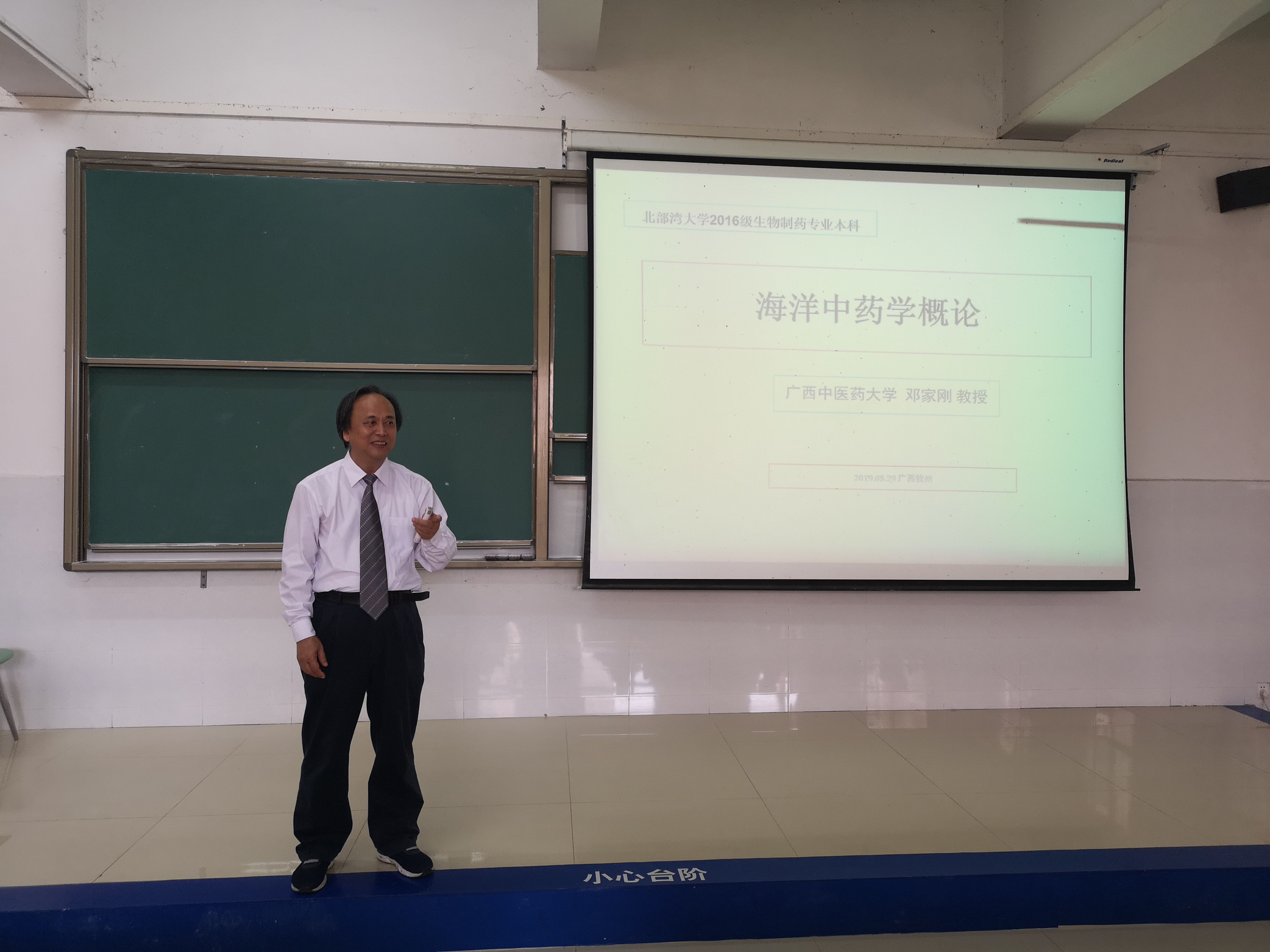 2019年5月29日,受北部湾大学海洋学院邀请,beat365官网《海洋中药学》学术带头人邓家刚教授为该校2016级生物制药专业本科学生100余人讲授《海洋中药学概论》。