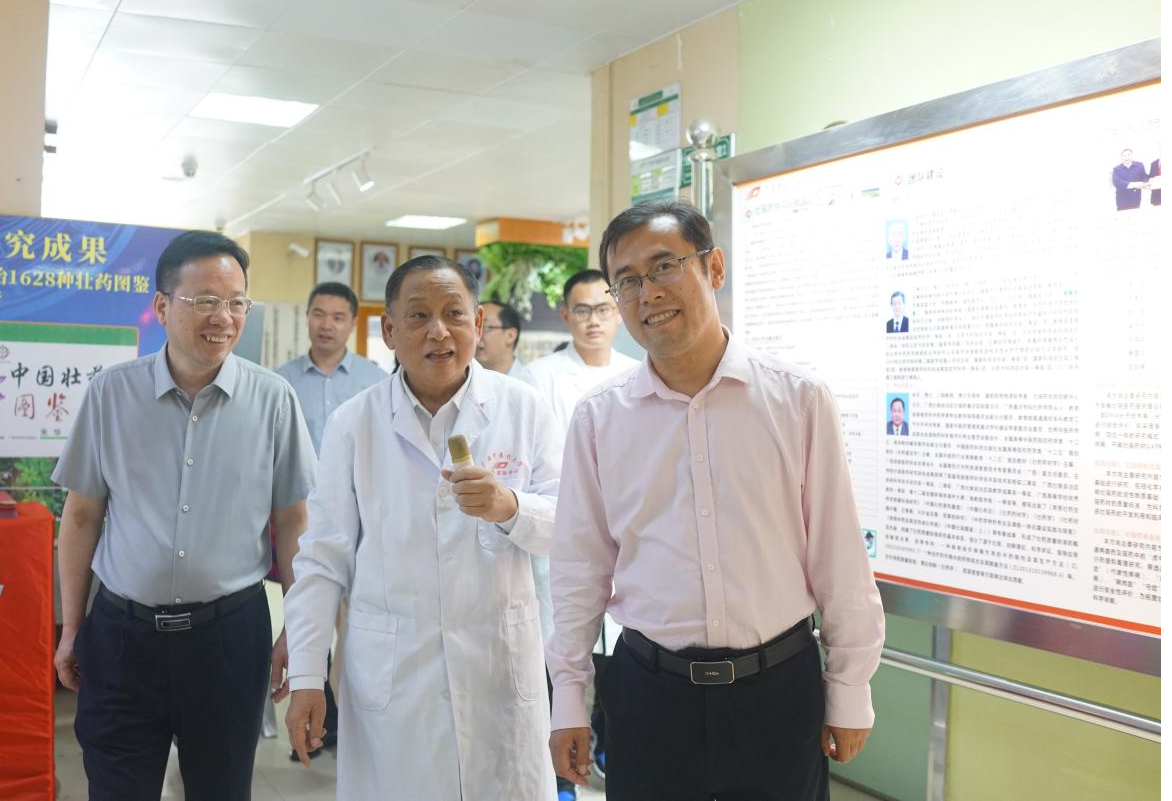 调研组董云龙副司长指出:“壮瑶药研究平台在壮瑶医药事业发展中取得较大的成绩,应给予充分肯定,希望平台充分发挥壮医药、瑶医药优势,加大壮医药、瑶医药的研究力度,专注疗效好、特色鲜明的壮医药、瑶医药的研究与开发,制定相应的质量标准,推进广西中医药民族医药高质量发展。”