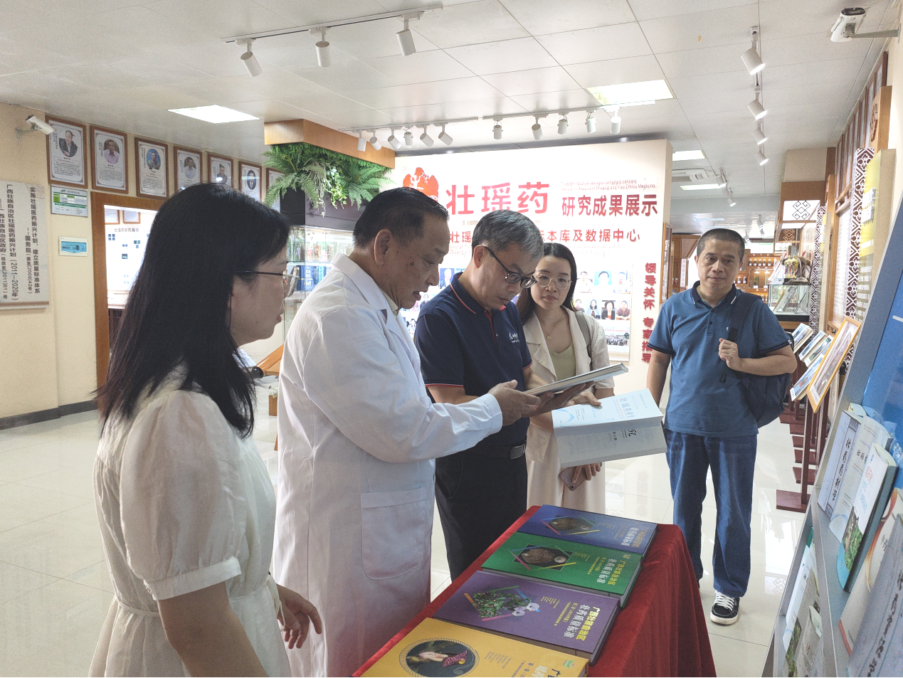 9月6日下午,《广西科学》、《广西科学院学报》常务副主编黎贞崇、编辑部副主任陆雁到我平台考察并参加广西壮瑶药重点实验室、壮瑶药协同中心、广西民族药资源与应用工程研究中心座谈交流。黎贞崇一行考察了本平台展厅及实验室,了解了本平台壮瑶药研究的理论成果、科技奖项及龙血竭等产品。