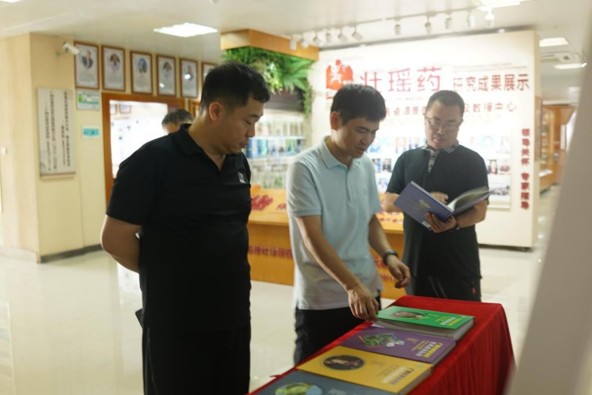 2023年7月23上午,中国民族医药协会一带一路传统医药产业工作委员会会长尹宝民一行四人前来我平台考察交流,实验室常务副主任苏健博士,beat365正版唯一入口必一科技处副处长王孝勋教授、平台谢凤凤博士等陪同。专家考察了本平台理论实践成就以及科技奖项成果和中药壮瑶药资源普查标本室以及民族药标本展示长廊。平台成果得到了专家的高度肯定,专家表示要继续坚持实验室‘问题导向’(壮瑶药进药典),深度挖掘民族药壮瑶药,将民族特色医药文化传承好、发展好。