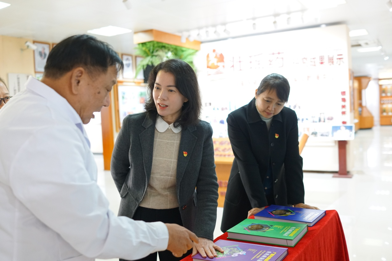 12月5日下午,beat365正版唯一入口必一党委常委、纪委书记覃宇环、学科办主任吴林、纪委副书记韦海英、教学教辅党委书记罗晓燕等一行莅临本平台壮瑶药实验室,通过实地走访的形式了解了本实验平台建设情况。实验室朱华教授、苏健博士以及本平台壮瑶药研究团队骨干参与汇报。