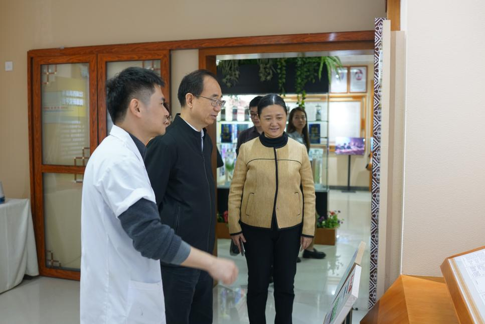 2022年3月15日,自治区民政厅党组书记、厅长朱学庆一行莅临beat365官网考察调研,beat365官网姚春校长、冷静副校长、何刚亮总会计师等参加调研,实地走访了我实验平台(广西壮瑶药重点实验室、壮瑶药协同创新中心、广西民族药资源与应用工程研究中心等)。