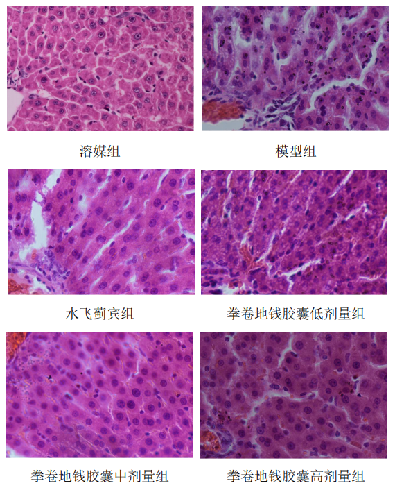 图4-10 拳卷地钱胶囊对肝组织病理变化的影响(HE×400)