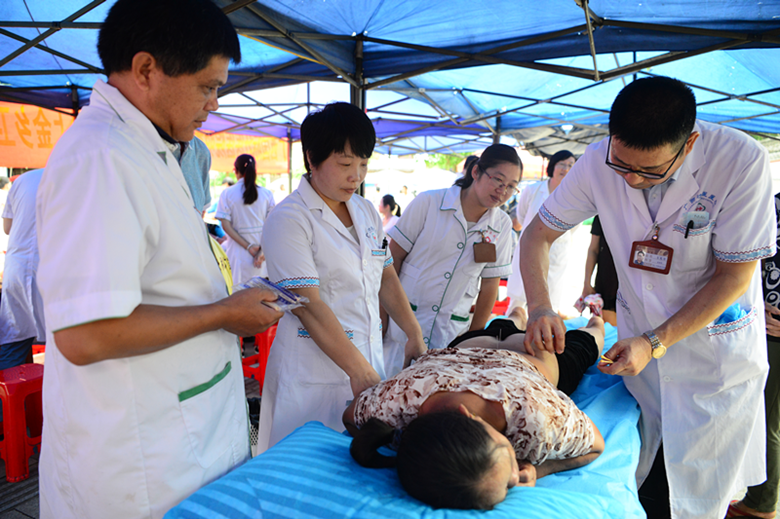 随后,专家团队进行了现场义诊,针灸等壮医技法深受当地群众欢迎。