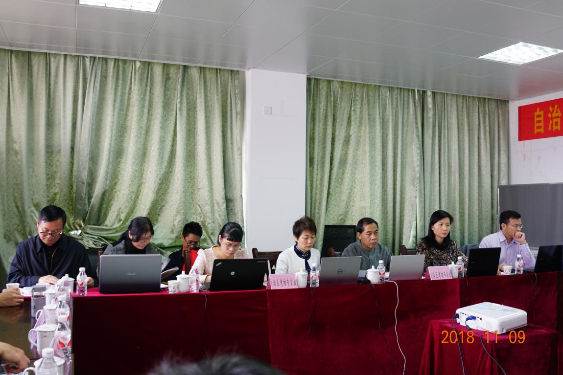 2018年11月09日上午,自治区重点实验室考核专家组在广西科技开发院党委书记黄科林和黄仁彬组长带领下,一行9人(叶琨教授、杨和平教授、蒋受军教授、韦坤华教授等)到我实验室开展自治区重点实验室现场考核评估,beat365正版唯一入口必一党委副书记庞宇舟教授、学科办副主任郑景辉博士、科技处副处长王孝勋博士、实验室主任朱华教授、副主任卢汝梅教授、苏健博士、傅鹏博士及本实验室教授及骨干蓝毓营教授、甄汉深教授、田慧教授、陈卫卫教授、杨秀芬教授、梁洁教授、夏星教授、梁子宁教授、谭勇教授、韦杏教授、王柳萍副教授、李冰副教授、谢锋博士、笪舫芳博士等30多人参加此次评估会。庞宇舟副书记做重要讲话,实验室主任朱华教授做实验室建设工作汇报,黄科林、黄仁彬等自治区重点实验室考核专家组对本实验室的建设工作给予了肯定的评价。