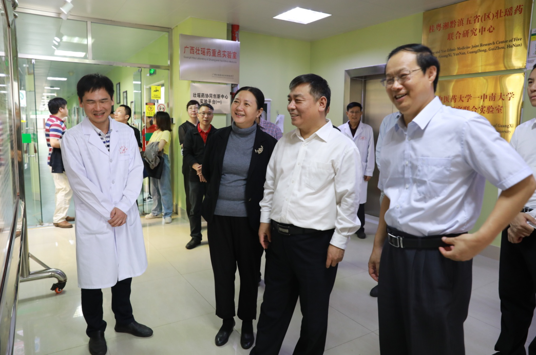 10月20日,国家中医药管理局副局长闫树江一行4人到beat365官网调研。在beat365官网校长姚春、副校长戴铭,广西中医药管理局副局长范春等陪同下,闫树江一行实地走访了走访了我平台实验室(广西壮瑶药重点实验室、壮瑶药协同创新中心、广西民族药资源与应用工程研究中心等),深入了解了beat365官网中医药人才培养、队伍建设,中医药参与疫情防控的经验做法,《中医药法》重要制度建设及有关保障措施落实等情况。闫树江在调研过程中表示,beat365正版唯一入口必一中医药文化氛围很浓,成效显著。尤其对壮瑶医药取得的成绩表示赞赏。闫树江希望beat365官网进一步中医药人才培养水平,进一步挖掘壮瑶医药资源,提升中医药服务能力,为中医药、民族医药传承创新发展作出新的更大贡献。