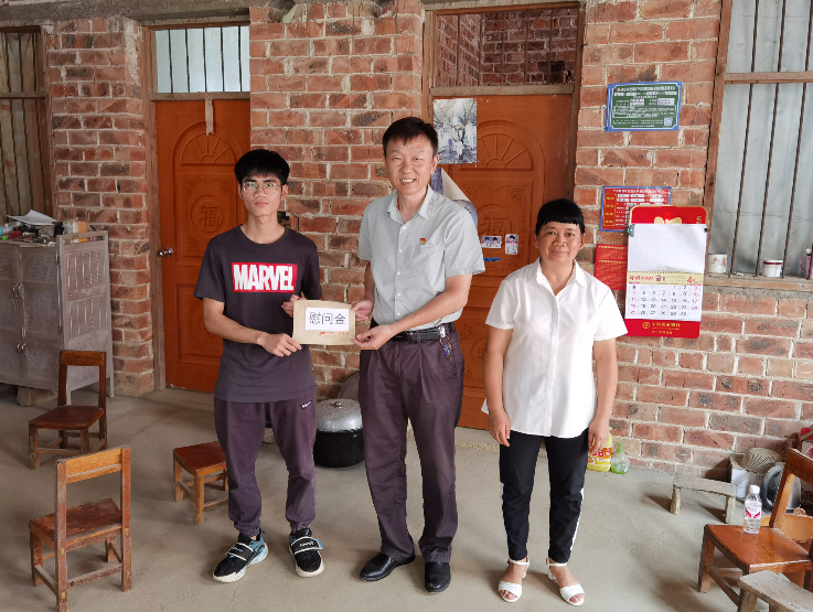7月18日,壮医药学院党总支书记张煜、学生办公室主任兰天莹一行前往南宁市武鸣区宁武镇东王村壮医学专业学生家中走访慰问。
