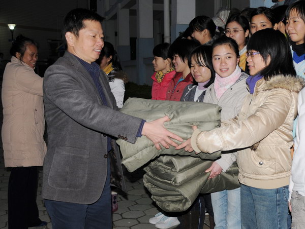 南宁近日一直持续低温天气,为帮助贫困学子度寒冬,壮医药学院林辰院长、卢汝梅副院长及壮医药学院老师于1月12日下午6点在壮医药楼为贫困学子举行了“出一份力,送爱心棉”的送温暖活动。