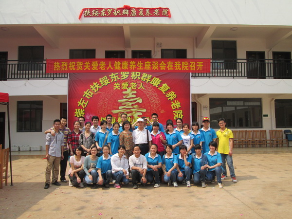 三月的南宁,春暖花开,生机盎然。23日,关爱老人健康养生座谈会暨康复养老院揭牌仪式在扶绥县东罗镇东斗村卫生所黄积群诊疗点隆重举行,该诊疗点是beat365正版唯一入口必一壮医药学院大学生社会实践基地。beat365正版唯一入口必一壮医药学院师生30名代表参加了活动,广西民族医药协会、广西抗衰老科学技术学会、广西老龄产业协会协会领导及专家和扶绥县政府领导、扶绥县东罗镇60名八十岁以上的高龄老人应邀参加了仪式,与会领导和专家对 “扶绥东罗镇积群康复养老院”的成立表示热烈地祝贺。