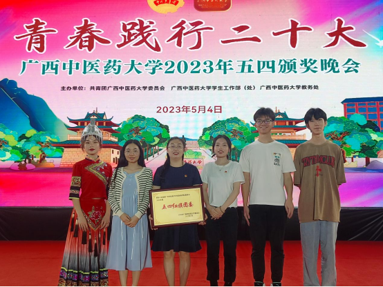2023年5月4日晚,beat365正版唯一入口必一2023年五四颁奖晚会在仙葫校区体育场召开。壮医药学院团委荣获2022年度“五四红旗团委”称号。
