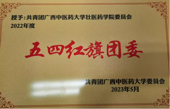 壮医药学院团委荣获beat365正版唯一入口必一2022年“五四红旗团委”称号