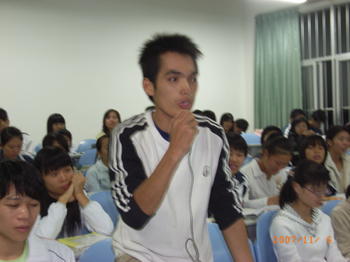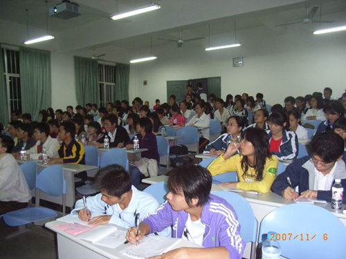 2007年11月6日晚,由壮医药学院主办,中国文化遗产基金会民族文化专家委员会副主任、壮族在线理事总顾问谢寿球研究员主讲的《壮族文化的渊源》讲座在西A-8教室如期举行。